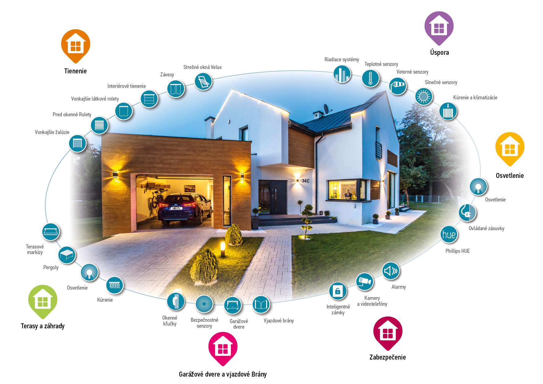 Prečo si vybrať automatizáciu domácnosti od Somfy? Pod pojmom domáca automatizácia si každý člověk predstaví niečo iné, keďže každý z nás má iné skúsenosti, potreby a návyky. Máme pre Vás ucelený rad výrobkov, ktoré sa týkajú všetkých častí domácnosti.